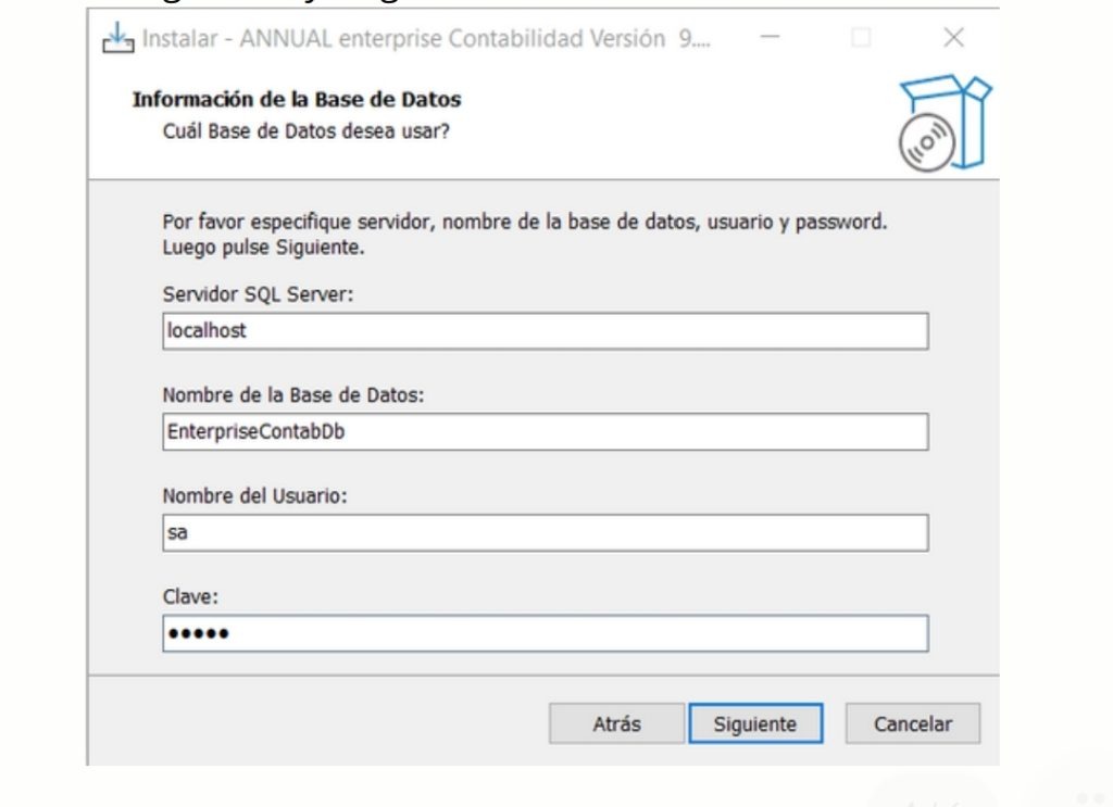 3. Configuración de la Base de Datos:Indica el servidor SQL (colocar «localhost» si la base de datos se encuentra en el mismo equipo).