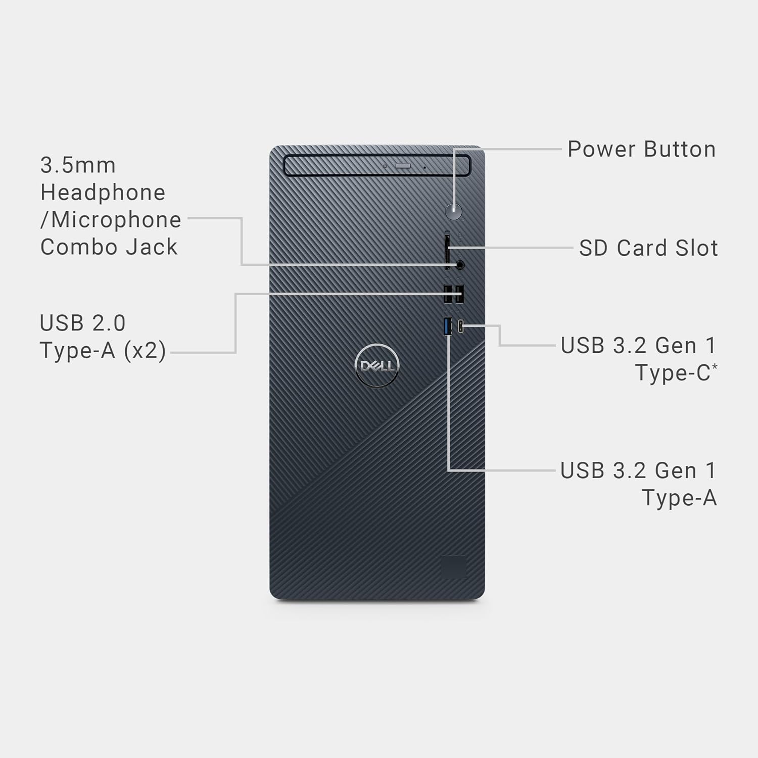 Conexión sencilla: con WiFi 6, no hay que esperar por una señal inestable. Le brinda un rango más amplio, más estabilidad y velocidades de conexión más rápidas. Esta computadora de escritorio Inspiron admite hasta 3 monitores en FHD o 1 monitor en 4K con HDMI trasero y Display Ports.